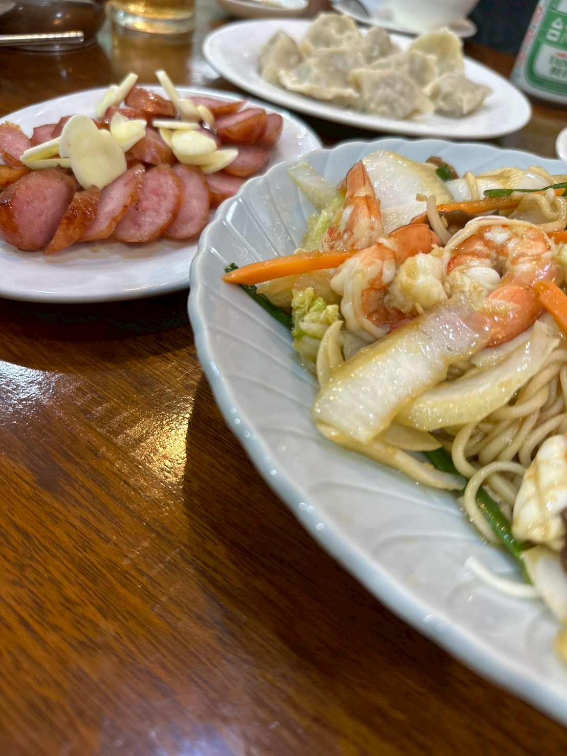 ↓魚介の炒め物と餃子!